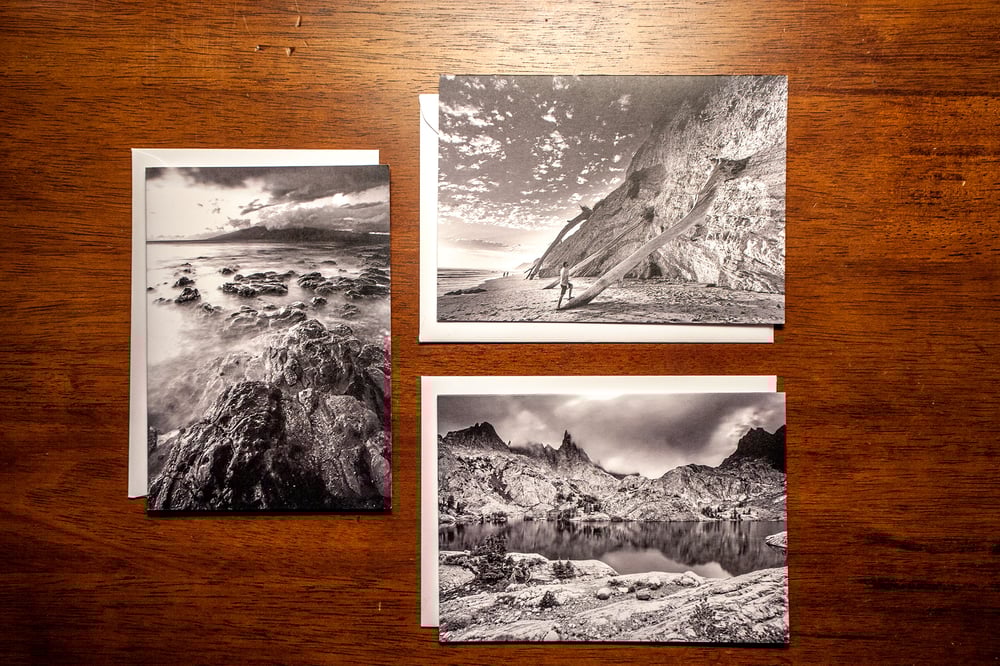 I have a limited quantity greeting card sets with photos by Daniel Ochoa. They are a black and white set of 3 classic views on the outside and plain white on the inside. The images are from Santa Barbara, Maui, and the High Sierra. They each come with a plain white envelope. Hurry and pick up a pack while I still have a few left.